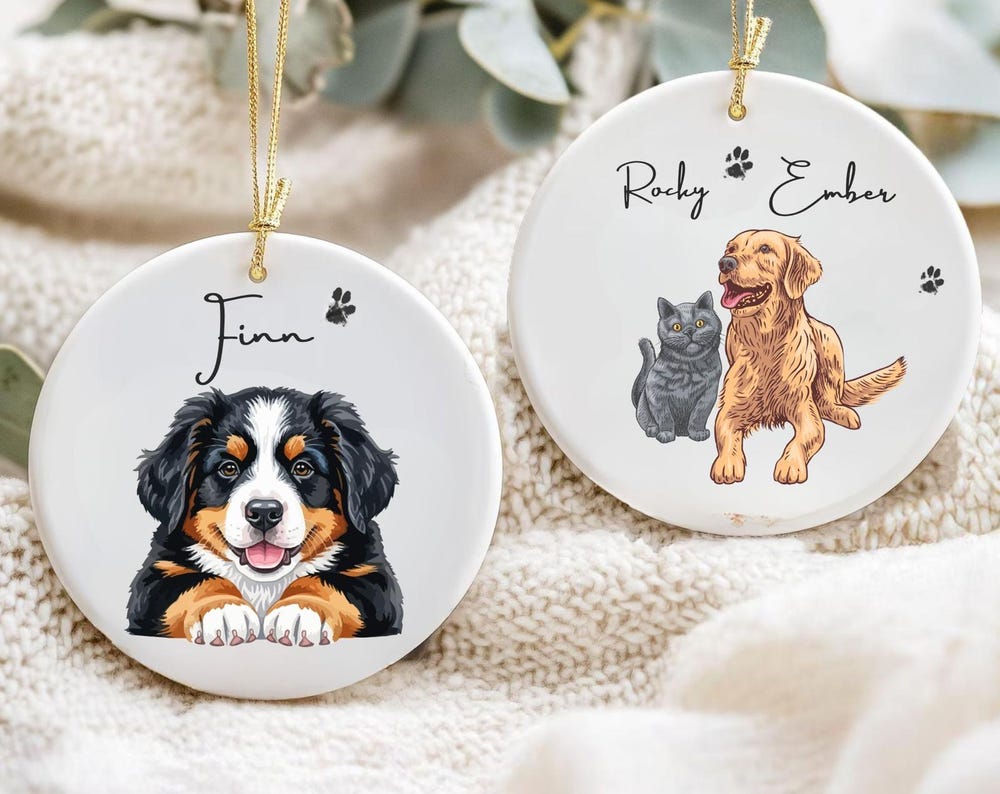 Custom Pet Photo Ornament – Personalized Dog Memorial Christmas Gift, Watercolor Pet Portrait Keepsake